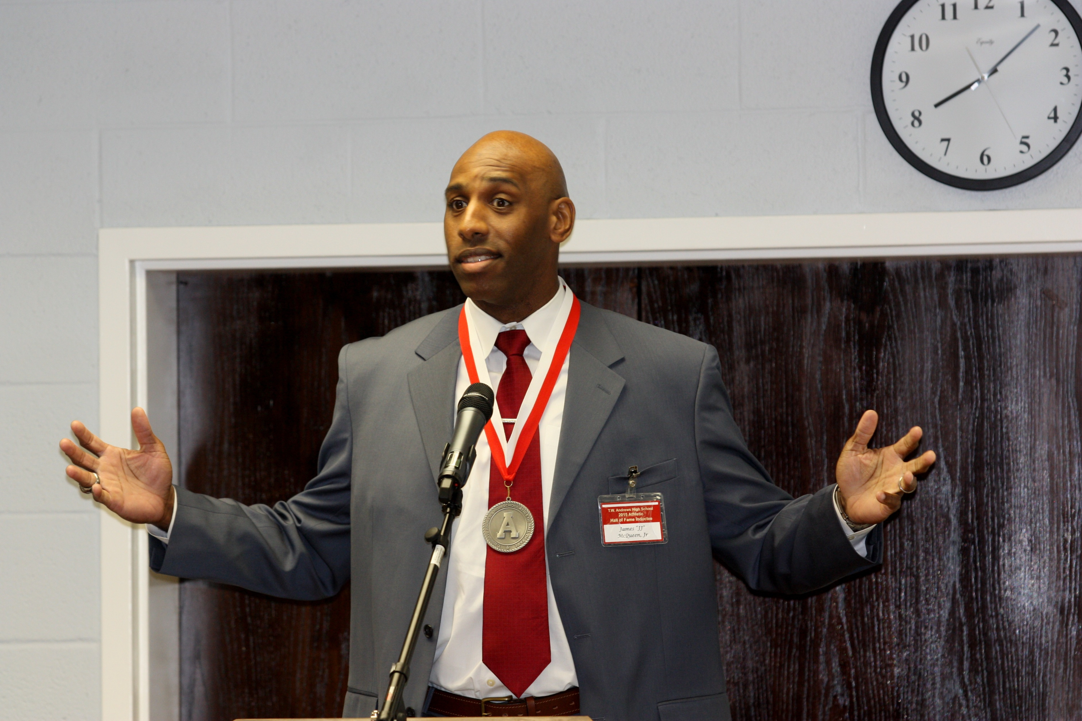 JJ McQueen was an outstanding three-sport athlete at Andrews. He competed in the high jump and triple jump in track, but it was in football and basketball that he made his mark. He was the team Captain his senior year on the 1995 basketball team that won the 3A State Championship, the first ever for Andrews basketball. He is still the TWA all-time leading rebounder. JJ was a tight end and defensive end in football and was named All-State and Honorable Mention All-American his senior year. He played in the 1994 Shrine Bowl and the 1995 East-West All-Star game. He earned an athletic scholarship to East Carolina and played both football and basketball, lettering three times in each sport. In the final football game of his senior year, he caught eight passes for 108 yards and two touchdowns. He graduated in 1999 with a degree in Broadcast Journalism and went on to play seven years in the Arena Football League.